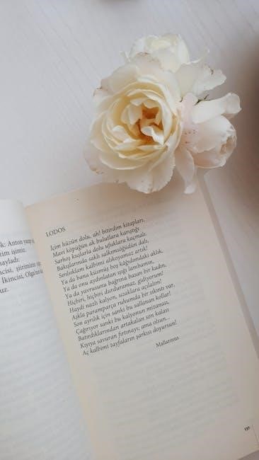 Emily Dickinson’s poetry is renowned for its vivid imagery and profound symbolism, which invite readers to explore deeper meanings. Her poems often depict nature—flowers, birds, seasons—as metaphors for life, death, and eternity. For instance, “Hope is the Thing with Feathers” uses a bird to symbolize hope’s gentle yet enduring presence. Dickinson’s unique style, including unconventional capitalization and dashes, enhances the imagery, creating a sense of immediacy and intimacy. These elements, now easily accessible in PDF formats, allow modern readers to engage with her symbolic language and interpret her timeless themes. Her mastery of imagery and symbolism continues to captivate audiences, making her poetry a cornerstone of American literature.