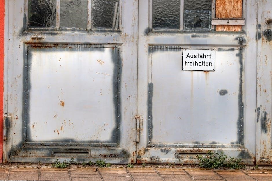 Regularly inspect the door for damage‚ and never attempt repairs you are not qualified to perform. Disconnect power before any maintenance. Be aware of pinch points and avoid placing hands or objects in the door’s path while moving. A preventative maintenance program significantly enhances safety and reliability.